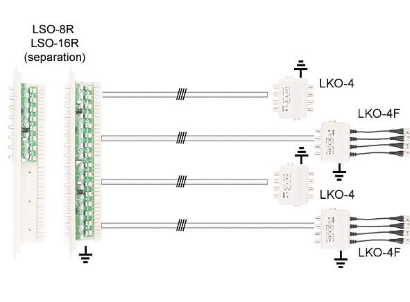 Separator galwaniczny - Eliminuje zakłócenia obrazu, powstałe w wyniku wyrównywania się różnicy potencjałów na przewodach wizyjnych. Zabezpiecza urządzenia takie jak kamery i rejestratory przed uszkodzeniem, w wyniku nagłego skoku pętli mas. Rdzeń amorficzny wprowadza znikome straty sygnału oraz zniekształcenia nieliniowe, które zawsze towarzyszą separatorom optycznym.