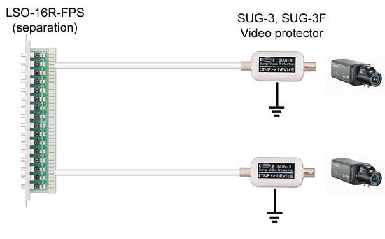 zabezpieczenia urządzeń telewizji przemysłowej, przed skutkami przepięć oraz