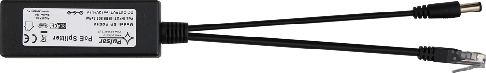 Splitter SP-POE12 przeznaczony jest do zasilania kamer IP, które wymagają napięcia zasilającego 12V DC. Zbudowany jest w oparciu o wysokosprawną przetwornicę DC/DC obniżającą napięcie z zakresu 44÷57V DC do wartości 12V DC. Maksymalny prąd obciążenia wynosi 1,25A (Pmax=15W). Splitter może być zasilany zarówno z urządzeń zgodnych ze standardem PoE (np. Switch PoE) jak również z pasywnych zasilaczy PoE wstrzykujących napięcie do par 4/5 i 7/8, które nie biorą udziału w transmisji danych (np. POE0448).