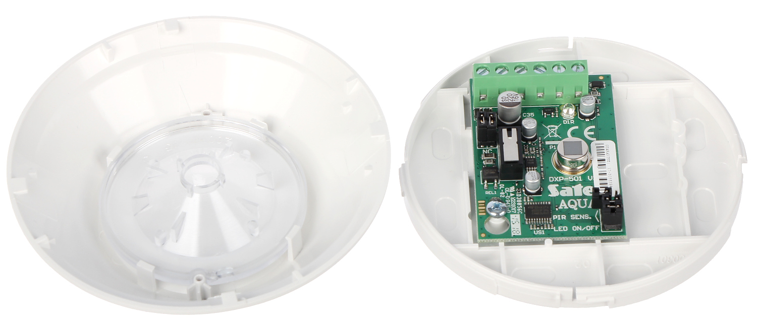 AQUA Ring to cyfrowa pasywna czujka podczerwieni w owalnej obudowie, przeznaczona do montażu sufitowego. Idealnie sprawdzi się ona w miejscach, gdzie montaż na ścianie jest utrudniony lub wręcz niemożliwy, np. w pomieszczeniach z całkowicie przeszklonymi ścianami lub witrynami. Można zastosować ją także w pomieszczeniu o znacznej powierzchni, gdyż z racji swej konstrukcji umożliwia ochronę dużego obszaru.