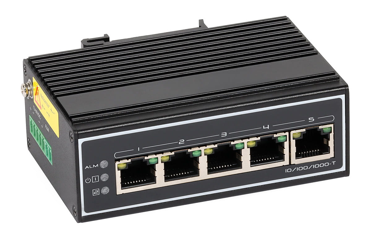 Switch ULTIPOWER to urządzenie typu przemysłowego zapewniające płynną transmisję sieciową. Umożliwia nawiązywanie połączeń z prędkością 10/100/1000 Mb/s. Posiada 5 portów RJ45 obsługujących automatyczną negocjację szybkości połączeń