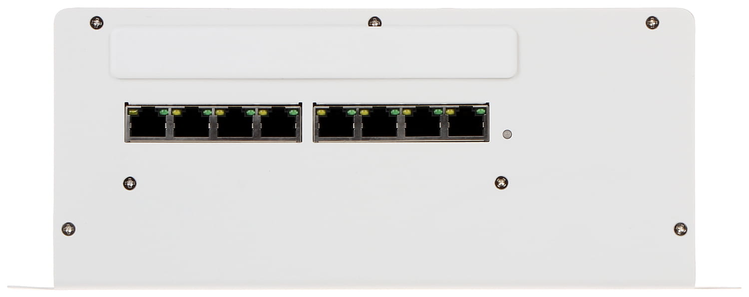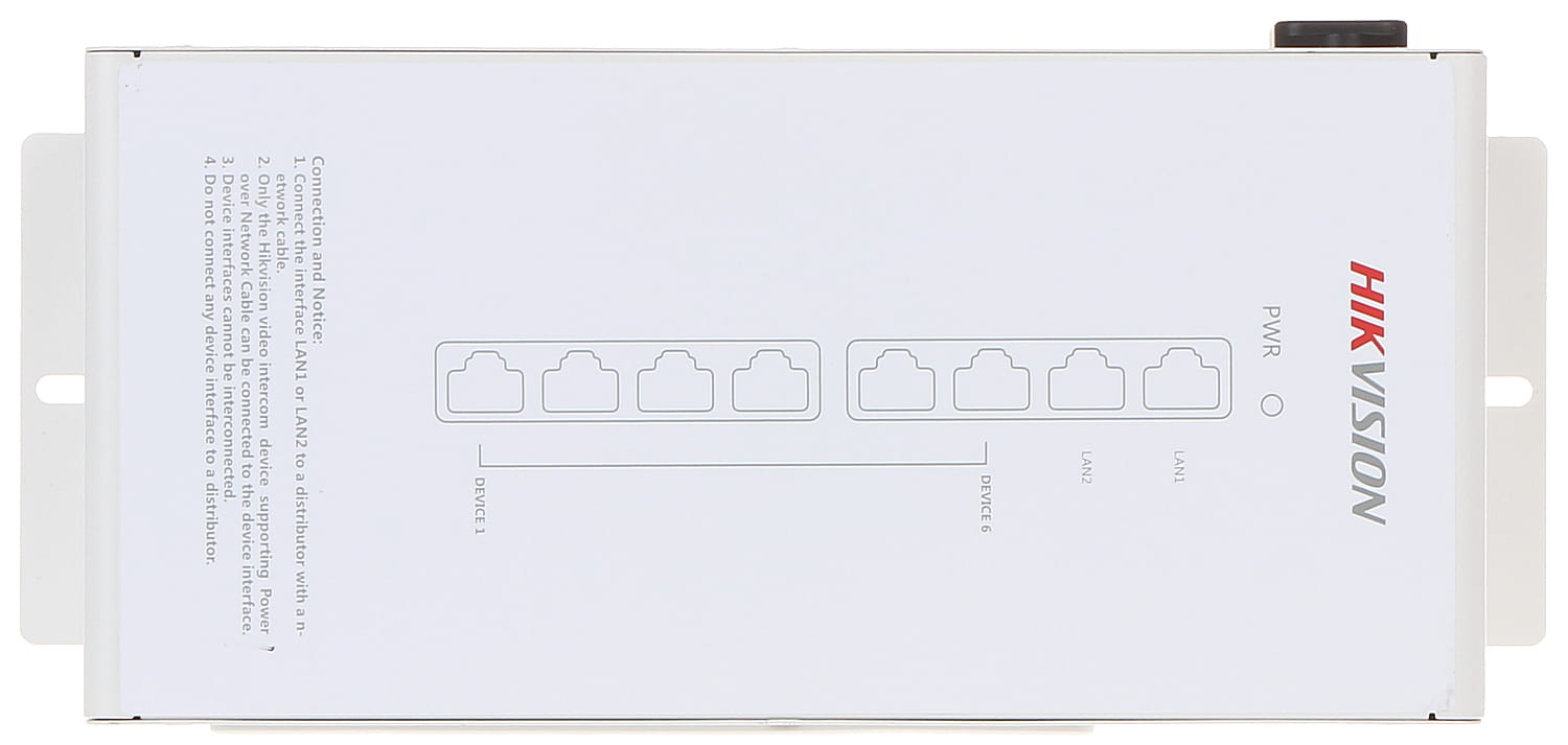 Urządzenie umożliwia obsługę oraz zasilenie maksymalnie 6 paneli wewnętrznych lub wideodomofonów. Podłączone bezpośrednio do switcha urządzenia DS-KAD606 są zasilane napięciem 24V DC za pośrednictwem przewodów połączeniowych UTP (cat. 5e).