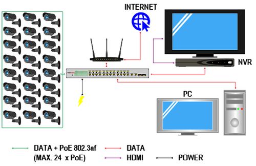 - 24 porty PoE, transfer danych i zasilanie urządzenia przy wykorzystaniu jednego kabla,