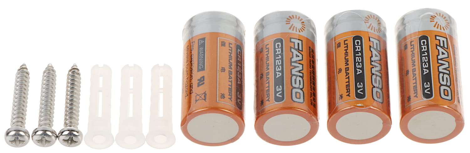 Urządzenie zasilane jest bateryjnie (4 x CR123A) lub napięciem 12V DC.