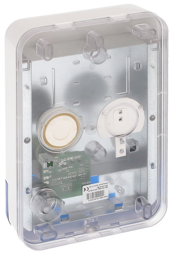 Wewnętrzna osłona z blachy ocynkowanej stanowi dodatkową ochronę elementów elektroniki przed uszkodzeniem mechanicznym. Obudowa zewnętrzna sygnalizatora wykonana jest z wysokoudarowego poliwęglanu, dzięki czemu charakteryzuje się bardzo dużą wytrzymałością mechaniczną i gwarantuje estetyczny wygląd sygnalizatora nawet po wielu latach eksploatacji.