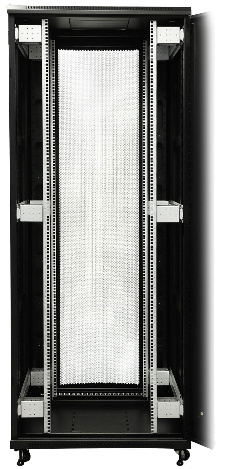 Szafa RACK posiada wiele otworów wentylujących zapewniając odpowiedni obieg powietrza. Dodatkowo jest możliwość zainstalowania wentylatorów mających na celu zapewnienie odpowiedniego chłodzenia w szafie.