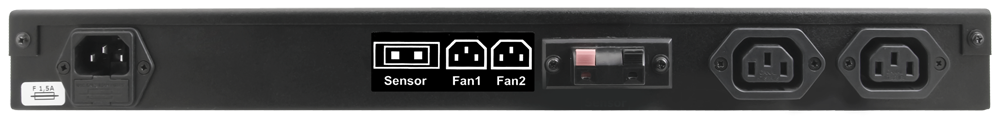 Panel cyfrowego termostatu w obudowie RACK 19” wysokości 1U. Posiada dwa gniazda zasilające – służące do sterowania zespołami wentylatorów typu RAWP / RAWP-1 / RAW1 / RAW2. Panel posiada rozłączny czujnik temperatury o długości 2m i rozłączny kabel zasilający 230 V AC o długości 2m.