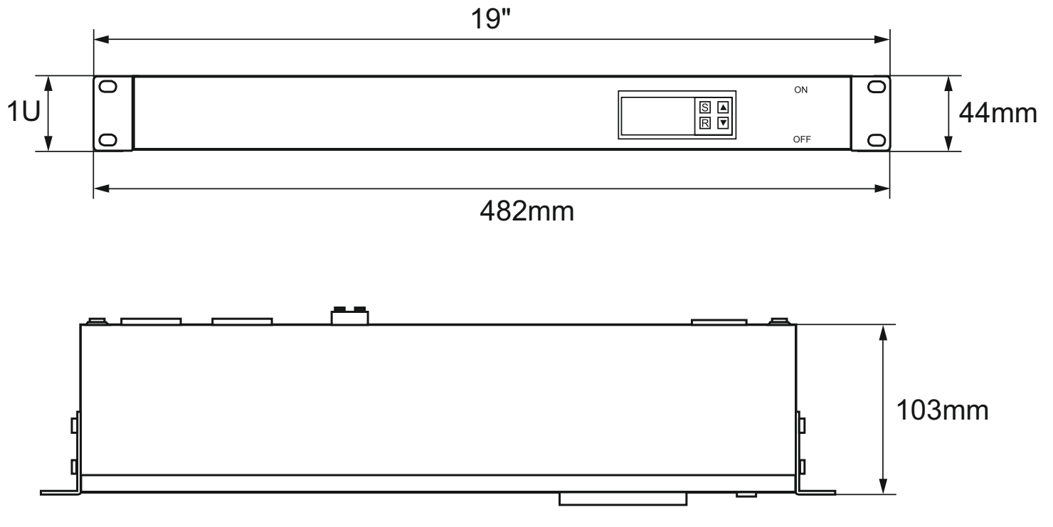 | Wymiary zewnętrzne: | W=482 , H=44 D=103 [mm, +/-2] |