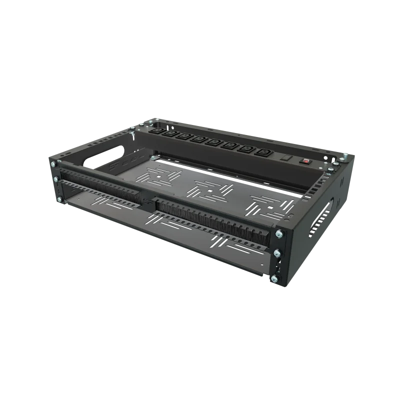 - Dodatkowe Otwory: Otwory od góry i dołu w standardzie 19" do zamocowania dodatkowych mniejszych urządzeń.