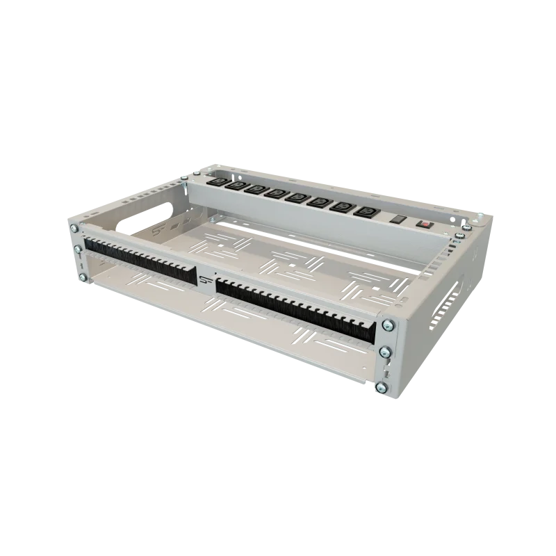 - Dodatkowe Otwory: Otwory od góry i dołu w standardzie 19" do zamocowania dodatkowych mniejszych urządzeń.