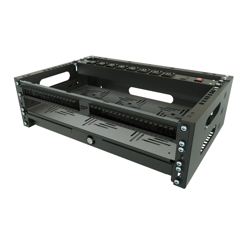 - Dodatkowe Otwory: Otwory od góry i dołu w standardzie 19" do zamocowania dodatkowych mniejszych urządzeń.