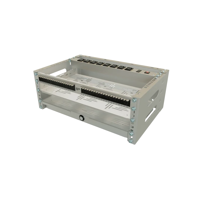 - Dodatkowe Otwory: Otwory od góry i dołu w standardzie 19" do zamocowania dodatkowych mniejszych urządzeń.