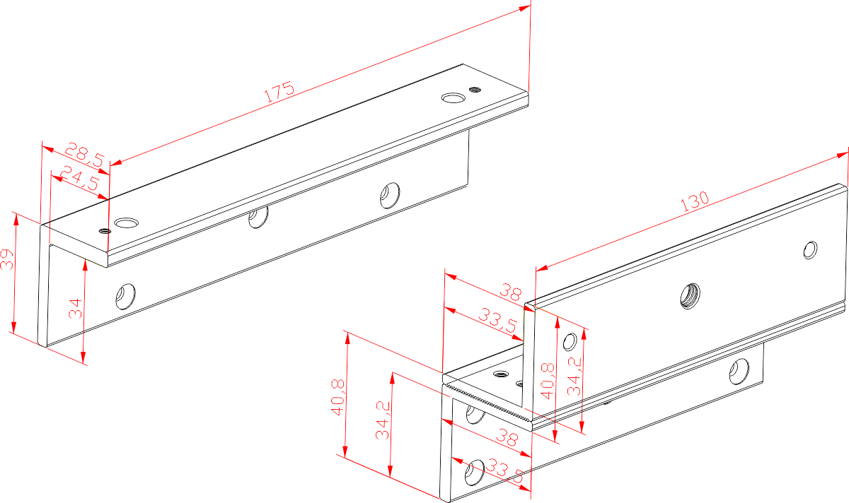 Uchwyt montażowy BK-350WZL typu "ZL" do drzwi otwieranych do wewnątrz, do montażu zwory Scot EL-350WS. Zwora dostępna osobno.
