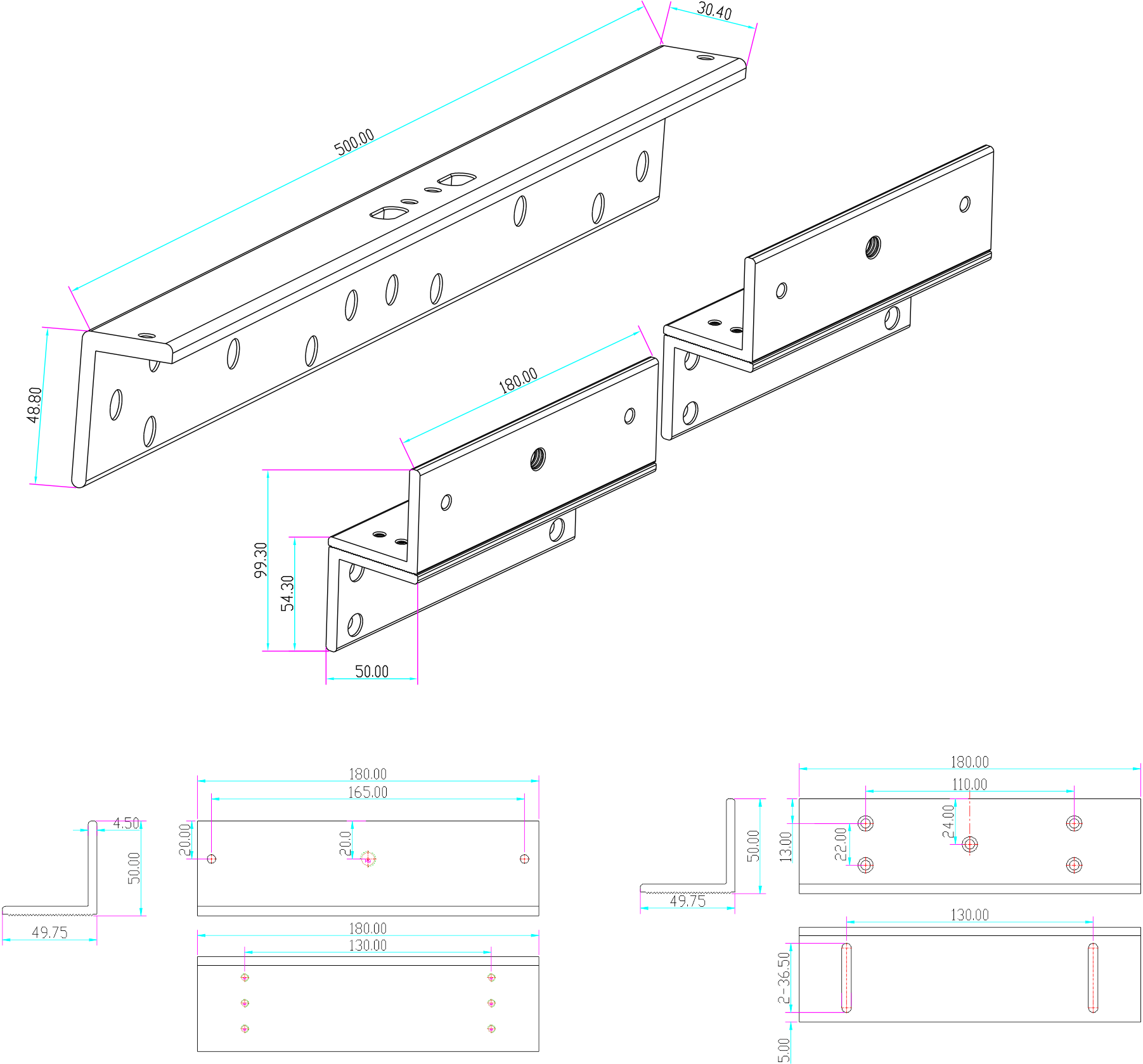 Uchwyt montażowy BK-600DZL2 typu "ZL" do drzwi otwieranych do wewnątrz, do montażu zwory EL-600DSL2. Zwora dostępna osobno.