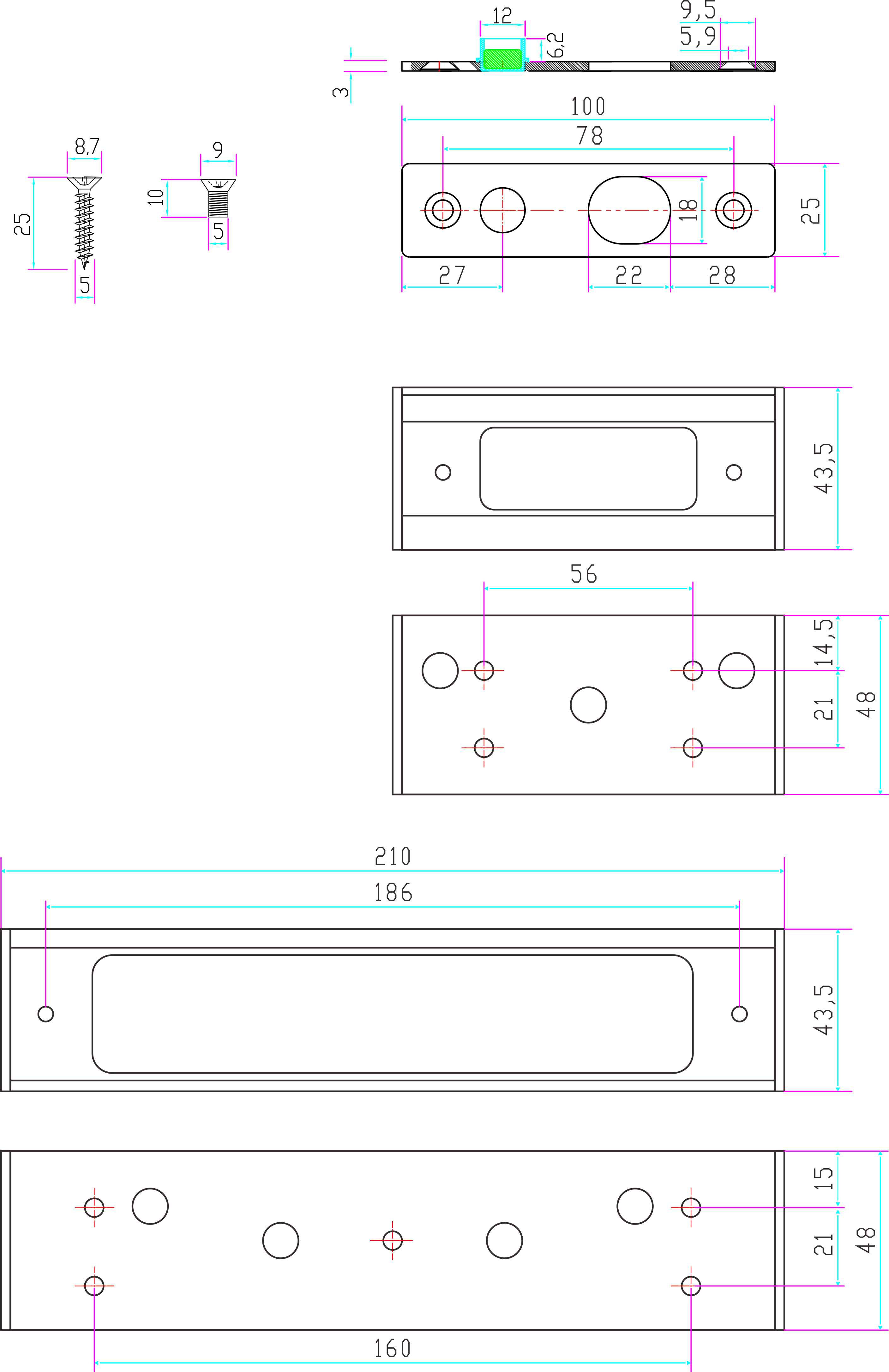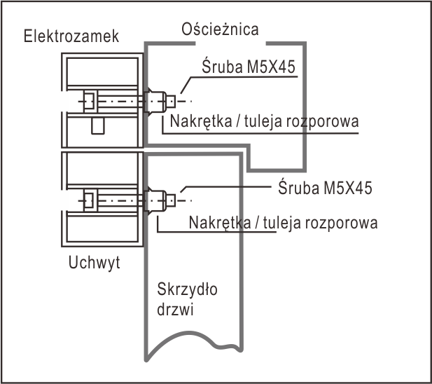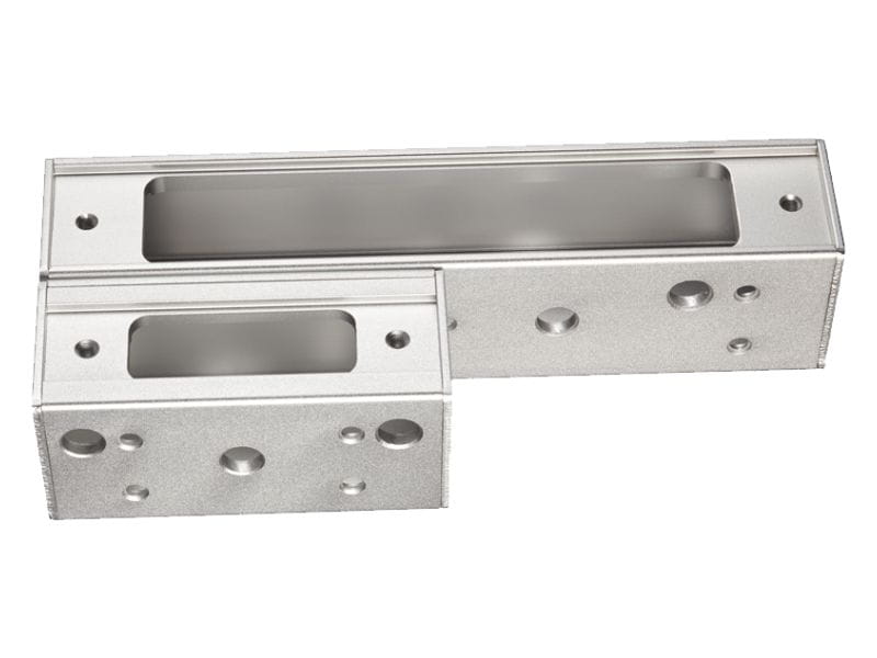 Uchwyt umożliwiający montaż elektrozamka trzpienowego EB-1300R w sposób nawierzchniowy.