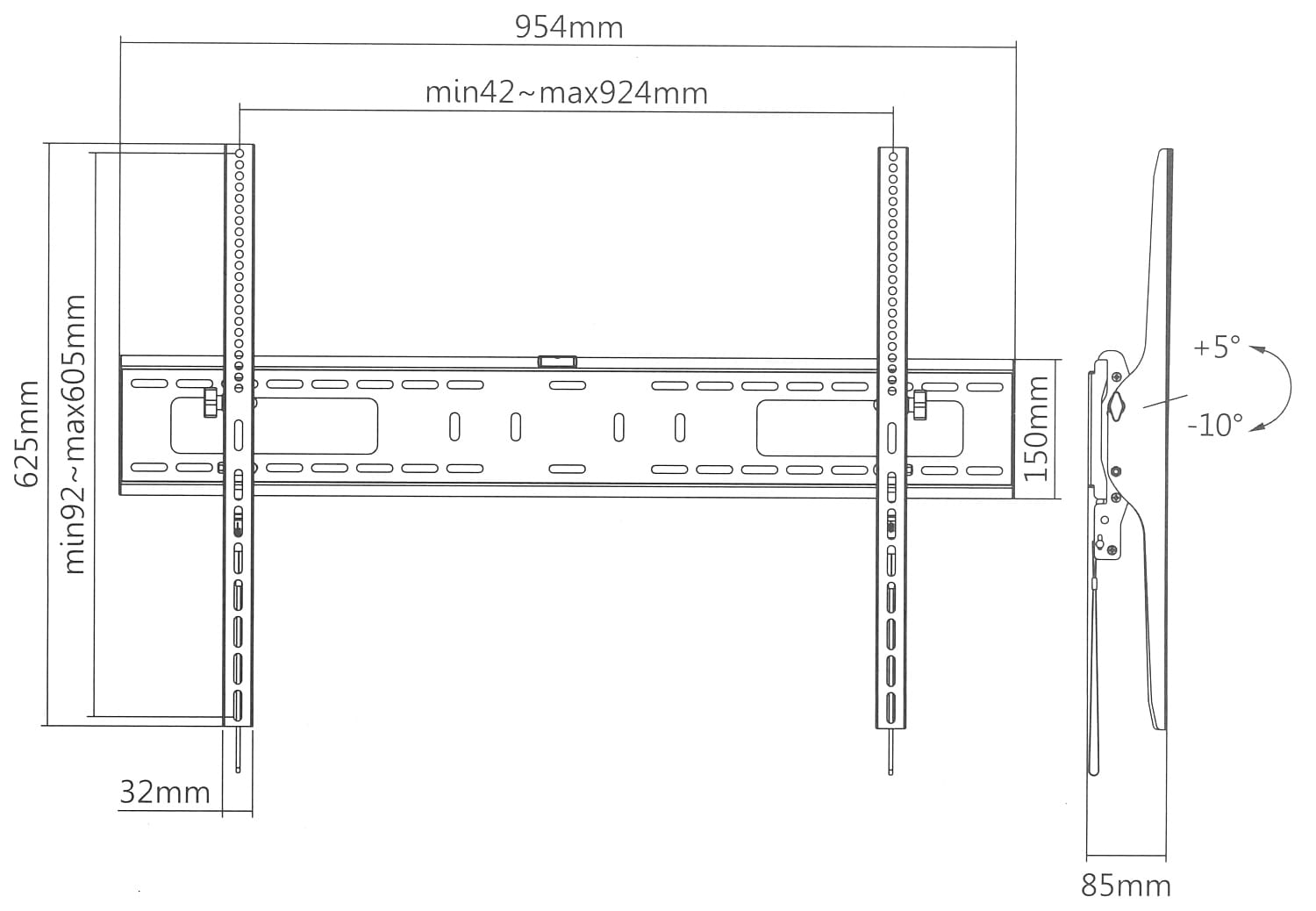 | Rozmiar TV w calach: | 60 " ... 100 " |