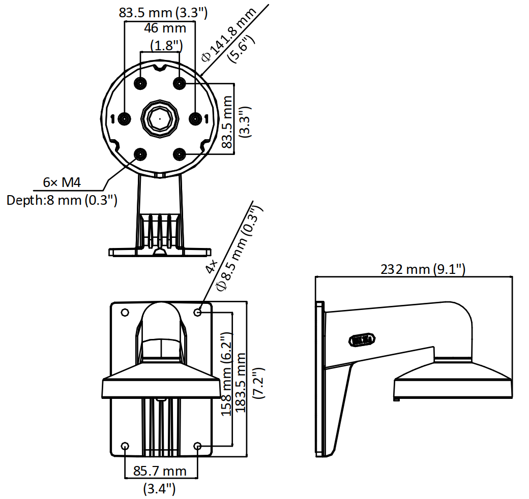 - Wymiary: Φ 141.8 mm × 183.5 mm × 232 mm