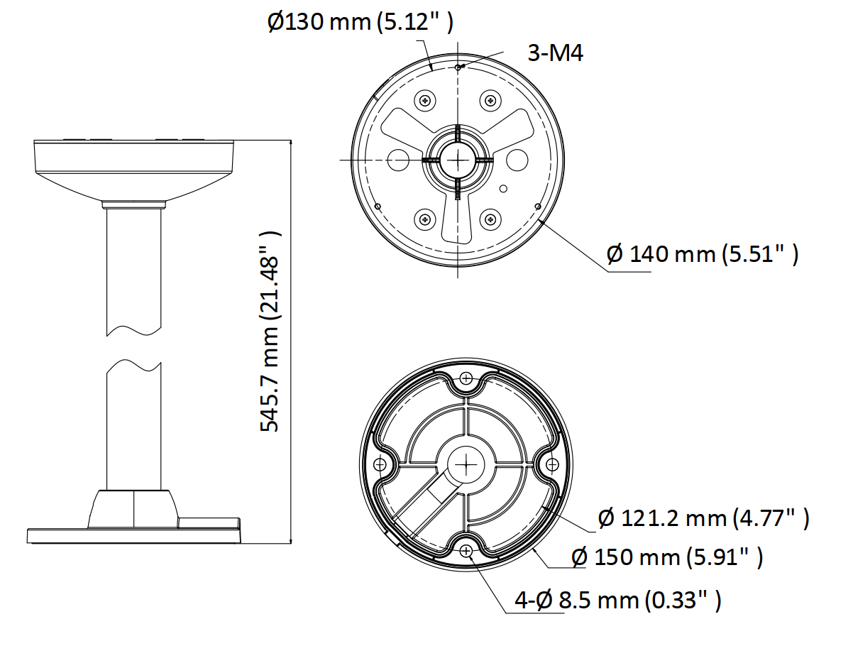 - Wymiary: Ø 150 mm × 545.7 mm