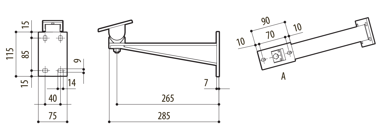 Aluminiowy wysięgnik naścienny do obudów Pelco.