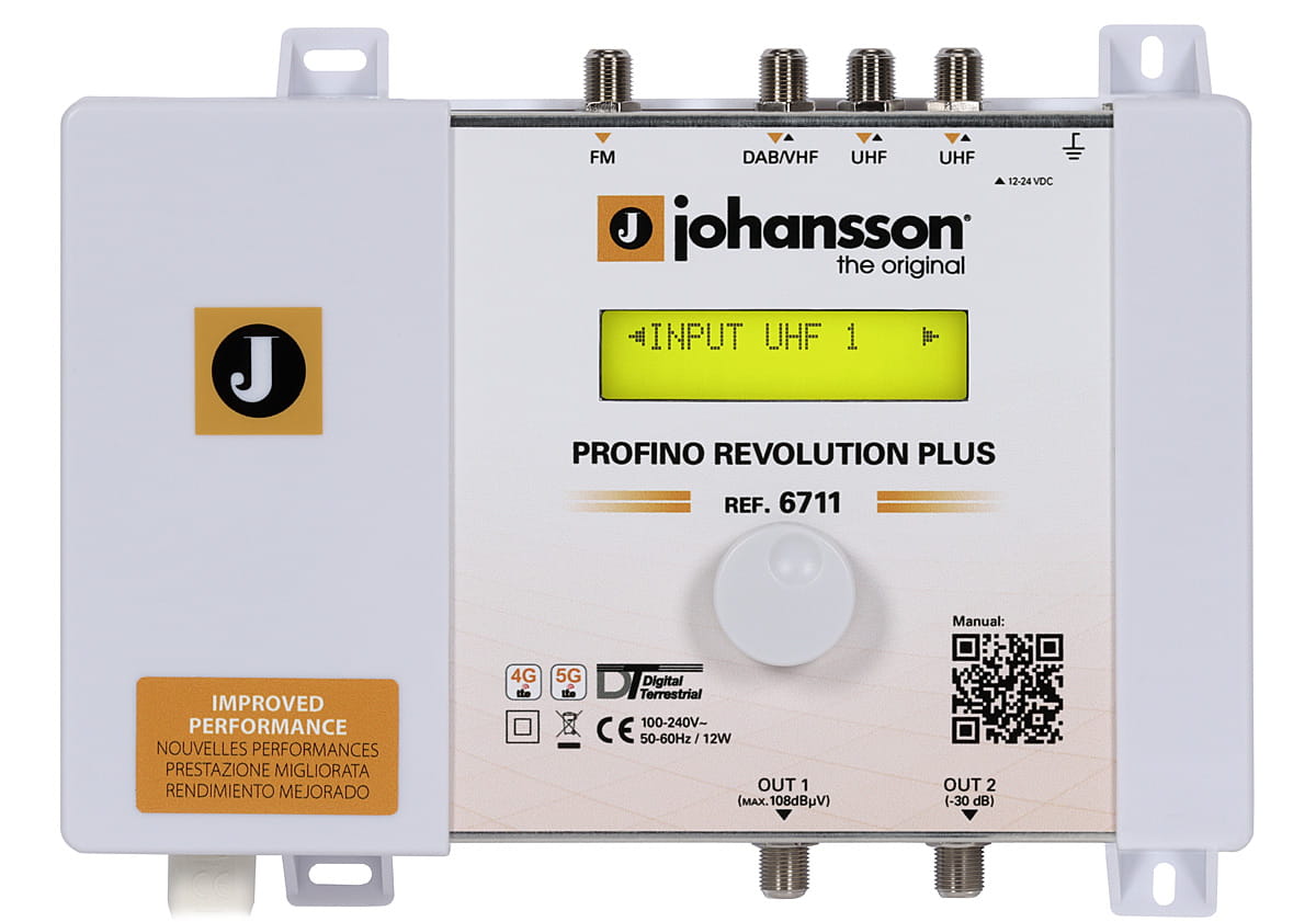 Wzmacniacz dedykowany jest do trudnych warunków odbioru sygnałów RTV, w których występują sygnały o zróżnicowanych poziomach, odbierane z kilku kierunków. Wzmacniacz posiada dwa programowalne wejścia sygnału dla pasma UHF (470-862 MHz), jedno wejście dla pasma DAB/VHF (174-240 MHz) oraz jedno wejście pasma FM (88-108 MHz) umożliwiając obsługę 30 torów kanałowych. Zastosowanie wzmacniacza umożliwia odbiór tych sygnałów, wyrównanie ich poziomów oraz wzmocnienie. Układ automatycznej regulacji wzmocnienia pozwala na wyrównanie poziomu sygnału dla wszystkich kanałów niezależnie od ich poziomu na wejściu urządzenia (przy zachowaniu minimum wymaganego dla poprawnej jakości sygnału). Instalator może w dowolny sposób skonfigurować wejścia DAB/VHF oraz UHF i zoptymalizować indywidualne poziomy kanałów w miejscu instalacji, tak aby zapewnić wysokiej jakości obraz na ekranie telewizora. Wzmacniacz PROFINO Revolution 6711 może być stosowany samodzielnie – jako część instalacji multiswitchowej lub część stacji czołowej (AiZ).