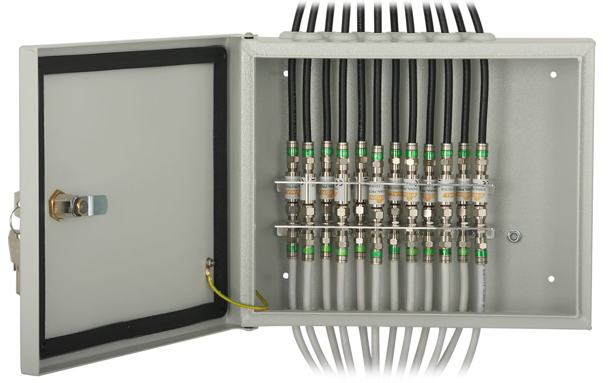 Zespół przelotowy 12 zabezpieczeń przeciwprzepięciowych ZPZ-12 Signal do instalacji multiswitchowych