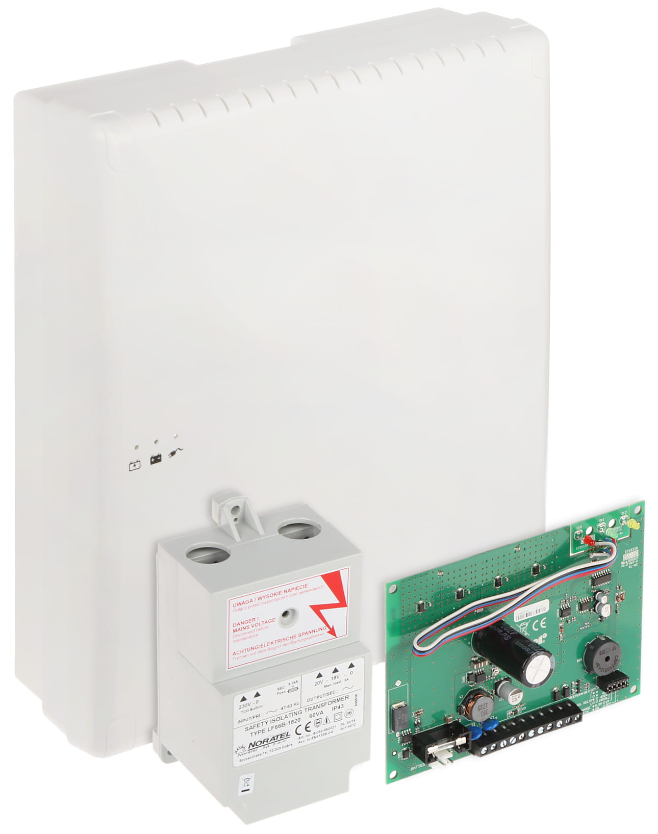Zasilacz wyposażony jest w styk sabotażowy. Trzy sygnalizacyjne diody LED odpowiadają za wskazanie obecności zasilania sieciowego, obecności zasilania akumulatorowego oraz trwającym procesie ładowania akumulatora. Ewentualne awarie sygnalizowane są dodatkowo przez sygnał akustyczny. Powiadamianie systemu alarmowego o problemach umożliwiają dwa wyjścia typu OC. Zmiany ich stanów informują o spadku napięcia akumulatora poniżej dopuszczalnej wartości (spowodowanego także odłączeniem akumulatora lub jego awarią) lub o zaniku zasilania sieciowego (czyli braku napięcia na wejściach AC).