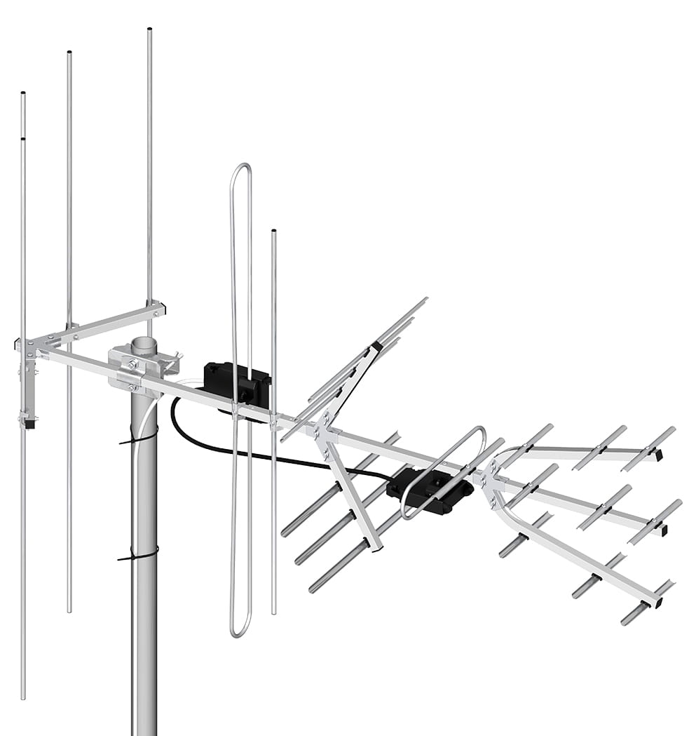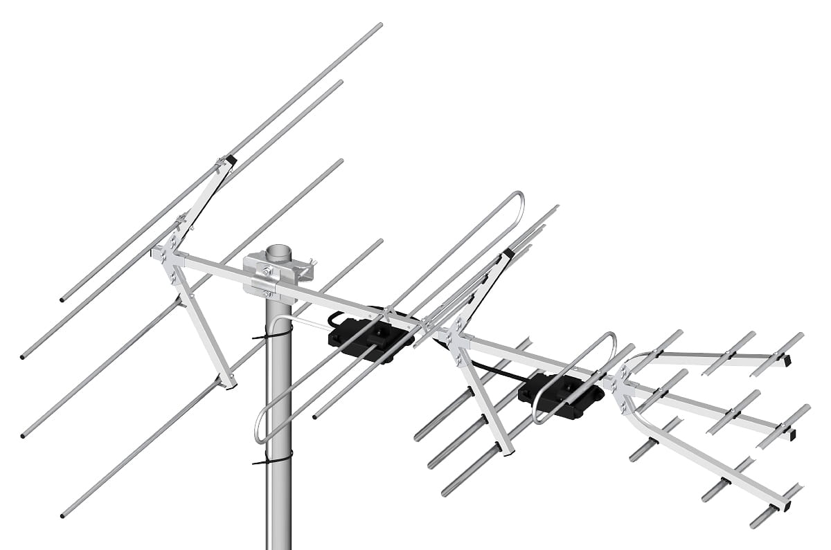 - w paśmie VHF (kanały 5 - 12) w polaryzacji poziomej lub pionowej