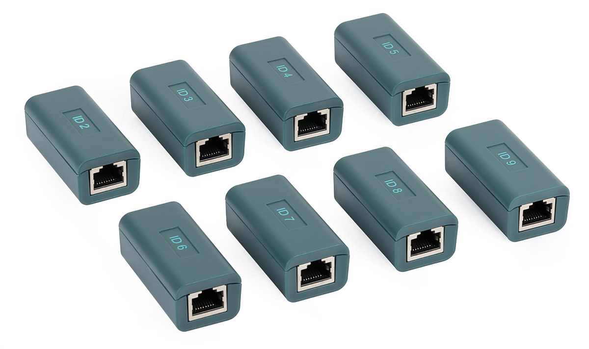 Terminatory umożliwiają wykrywanie i testowanie 8 przewodów (ID2-ID9). Działają one z miernikiem FORSCHER FS8117.