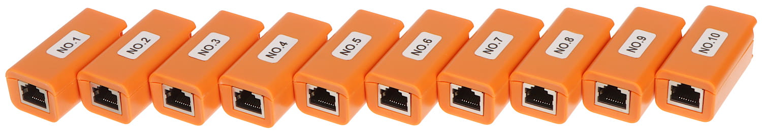 Zestaw terminatorów CS-TER-1/10 jest dodatkowym akcesorium do testerów CCTV serii CS-Hx oraz CS-Rx. Terminatory o nadanych numerach ID w zakresie 1 ... 10 umożliwiają szybką i wygodną identyfikację przewodów zakończonych złączami RJ-45. Tester po przyłączeniu do niego przewodu Ethernet z założonym na końcu terminatorem, wyświetli na ekranie numer ID danego terminatora.