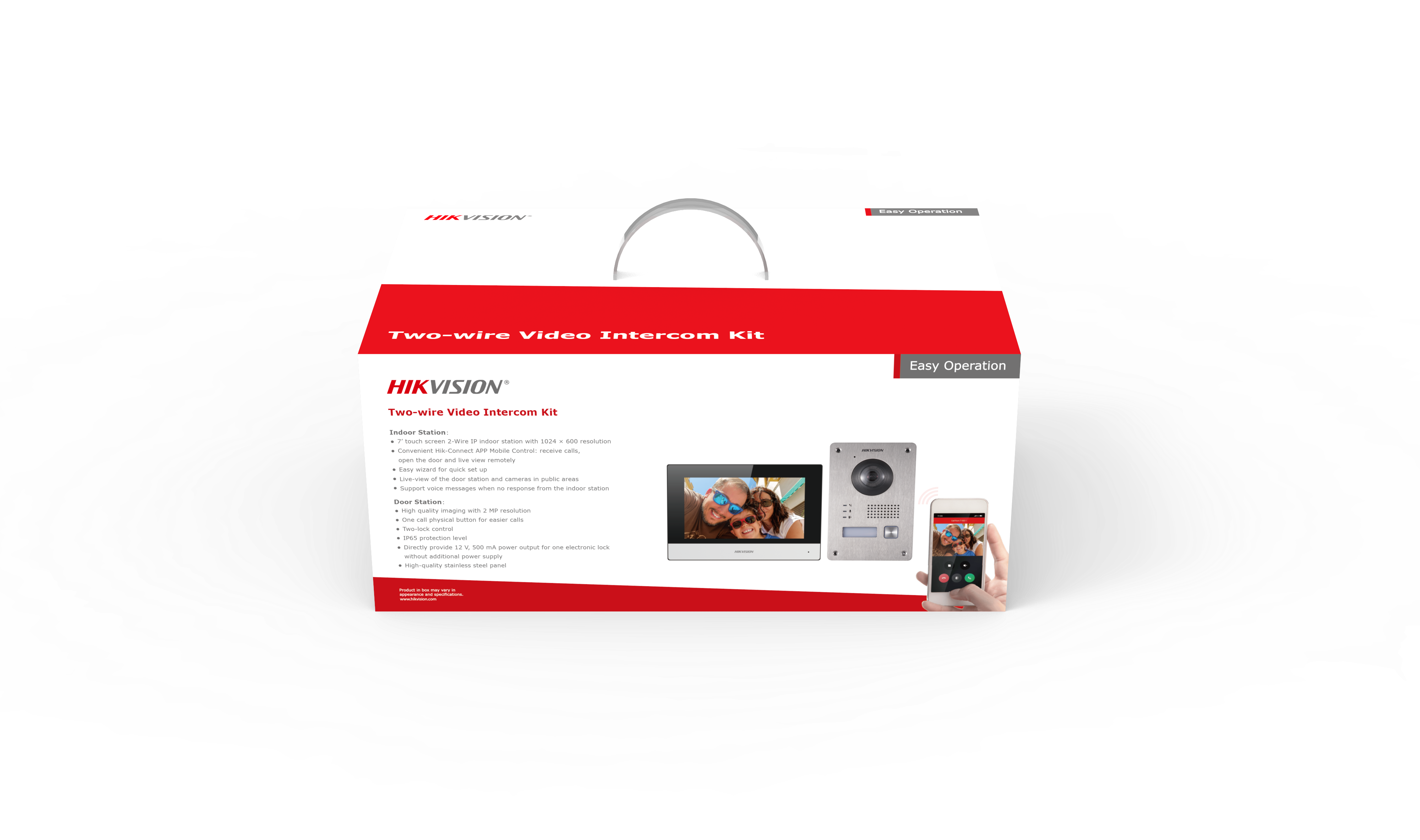 Dwuprzewodowy zestaw wideodomofonowy HIKVISION z 7" dotykowym monitorem. Wideodomofon umożliwia montaż podtynkowy lub natynkowy przy zastosowaniu znajdującej się w zestawie obudowy DS-KABV8103-RS.