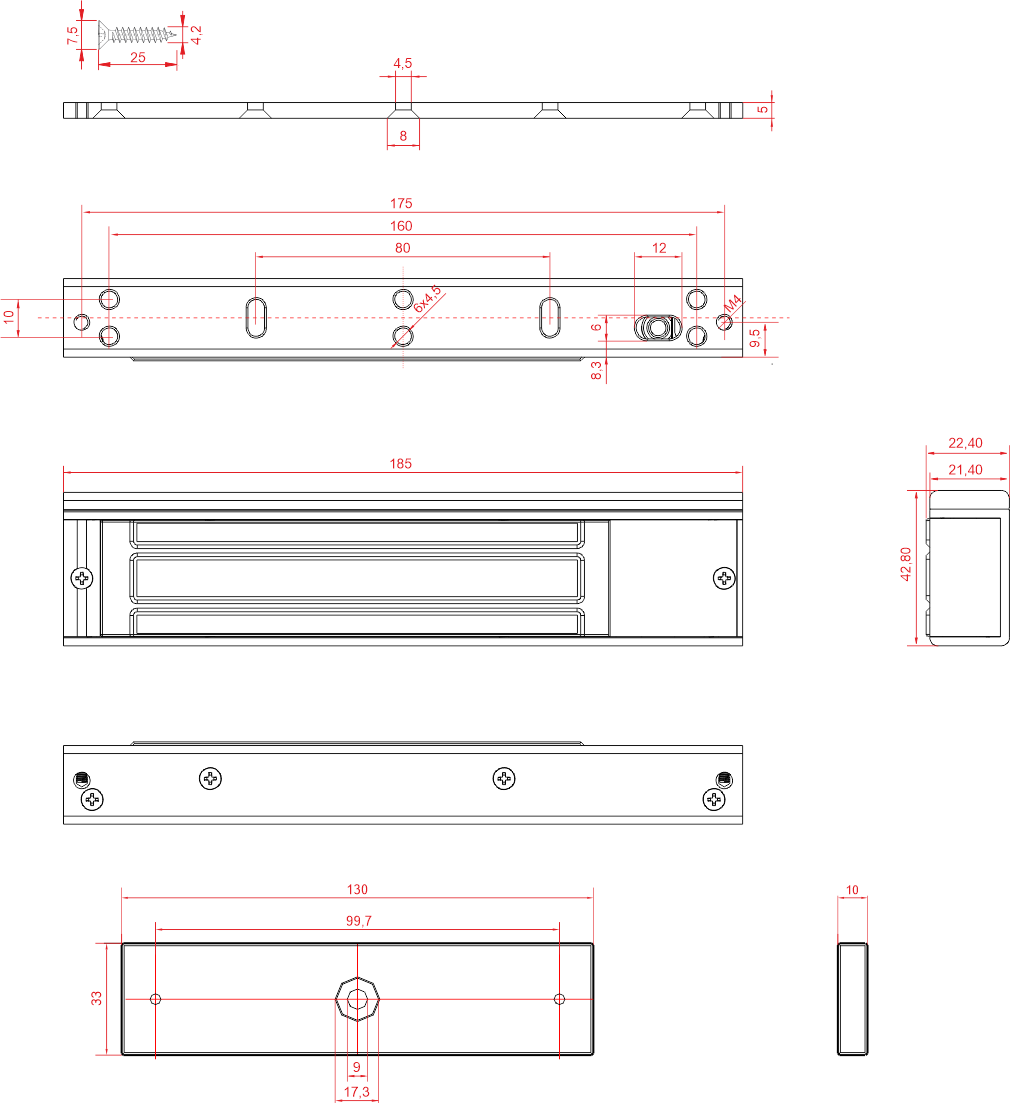 | Wymiary zwory (szer. x wys. x gł.) | 185 x 43 x 22 mm |