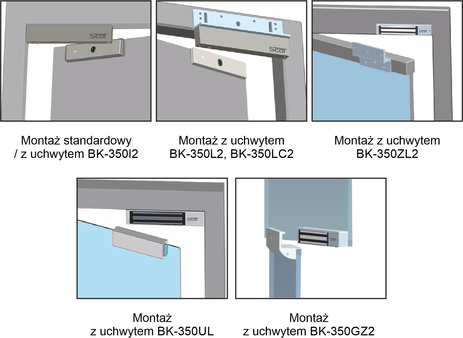 - BK-350ZL2 - Uchwyt montażowy typu "ZL" do drzwi otwieranych do wewnątrz