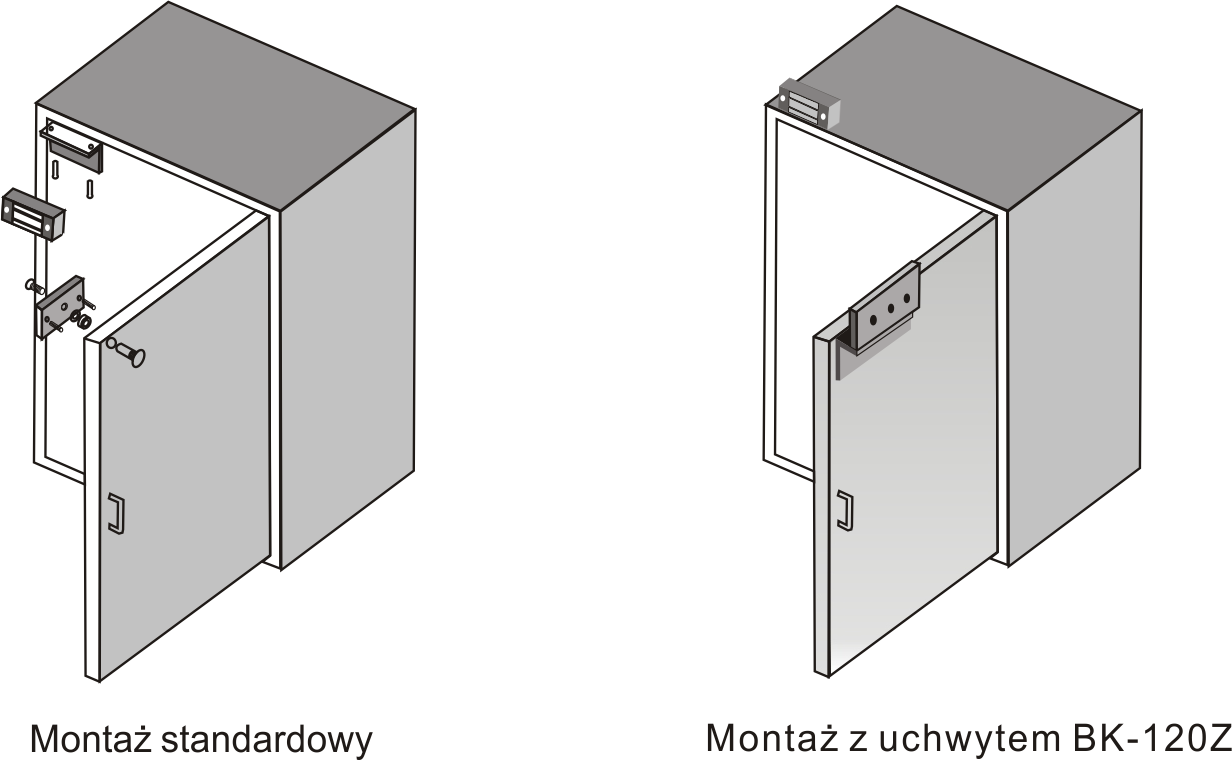 - BK-120Z - Uchwyt montażowy typu "Z" do drzwi otwieranych do wewnątrz