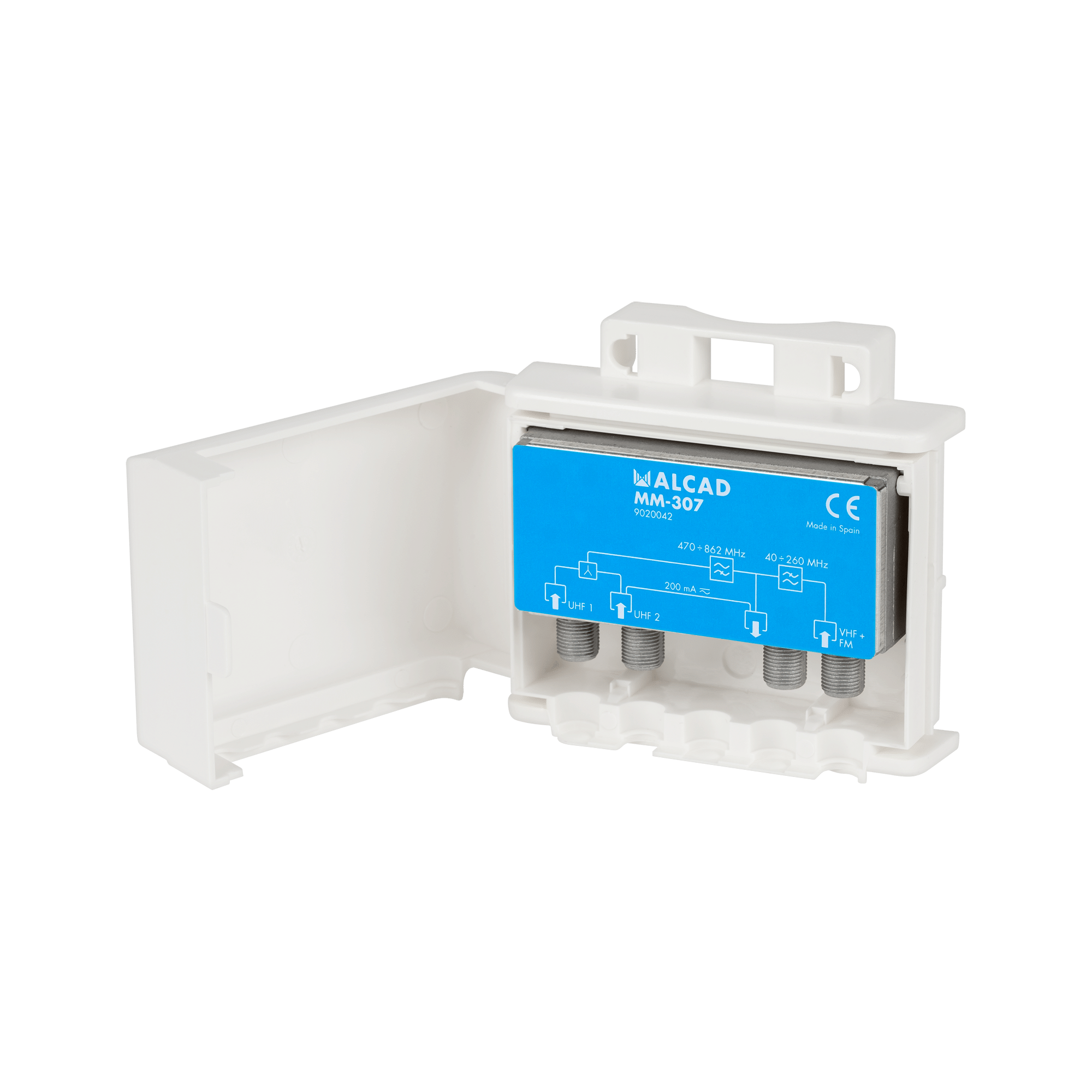 Masztowa zwrotnica MM-307 UHF-UHF-VHF/FM na złączach F stosowana jest jako element sumujący sygnały z 3 anten, montowana na maszcie antenowym.